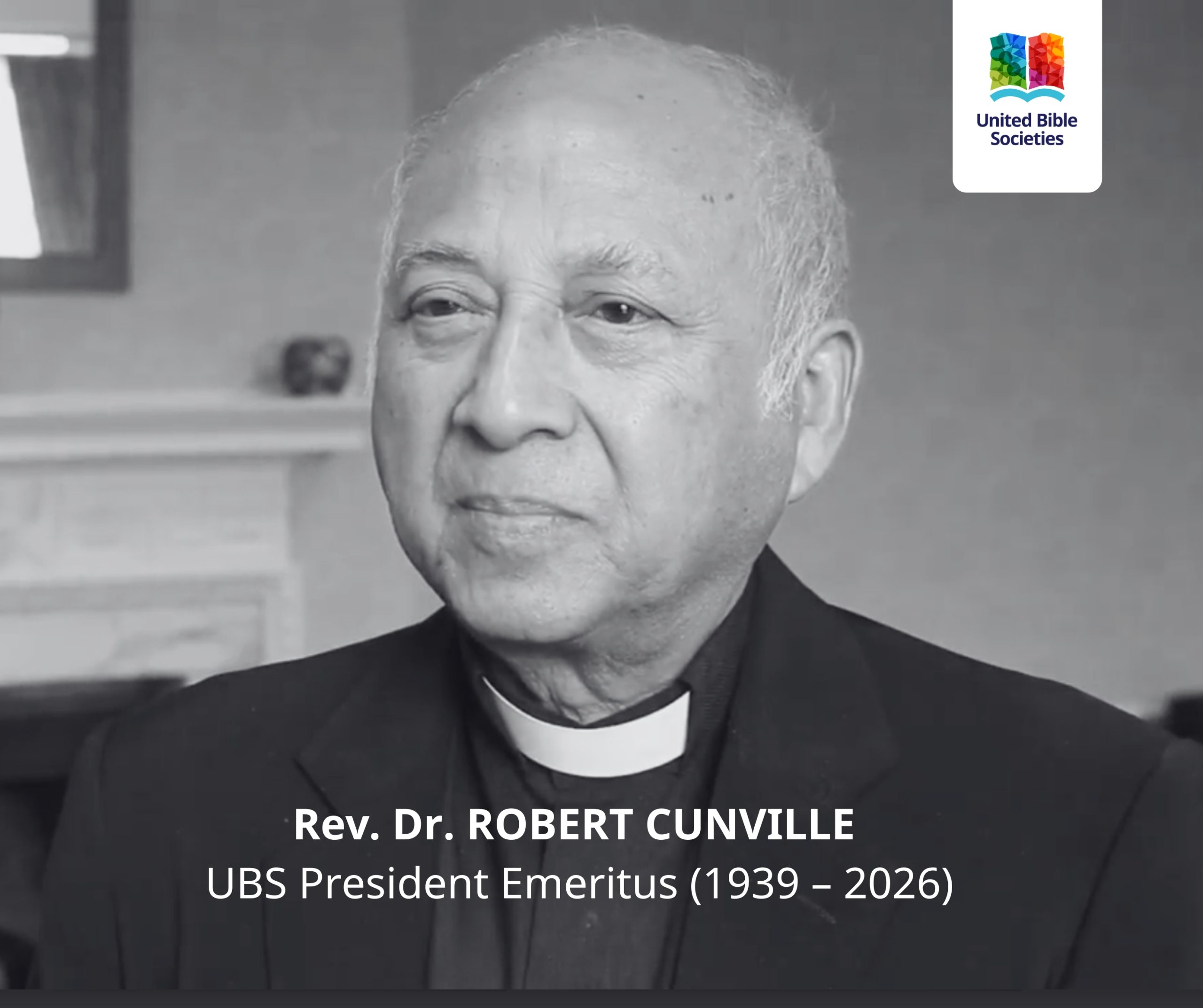 Rev. Dr. Cunville shared a long and deeply cherished relationship with United Bible Societies (UBS), serving as its President for twelve years. His leadership was distinguished by profound faith, wisdom, and humility. He will be remembered with deep affection and gratitude as a true servant of the Lord and as a trusted friend, mentor, and spiritual father within the UBS Fellowship. We rejoice in the assurance that he now rests in the presence of the Lord whom he loved and served so faithfully.