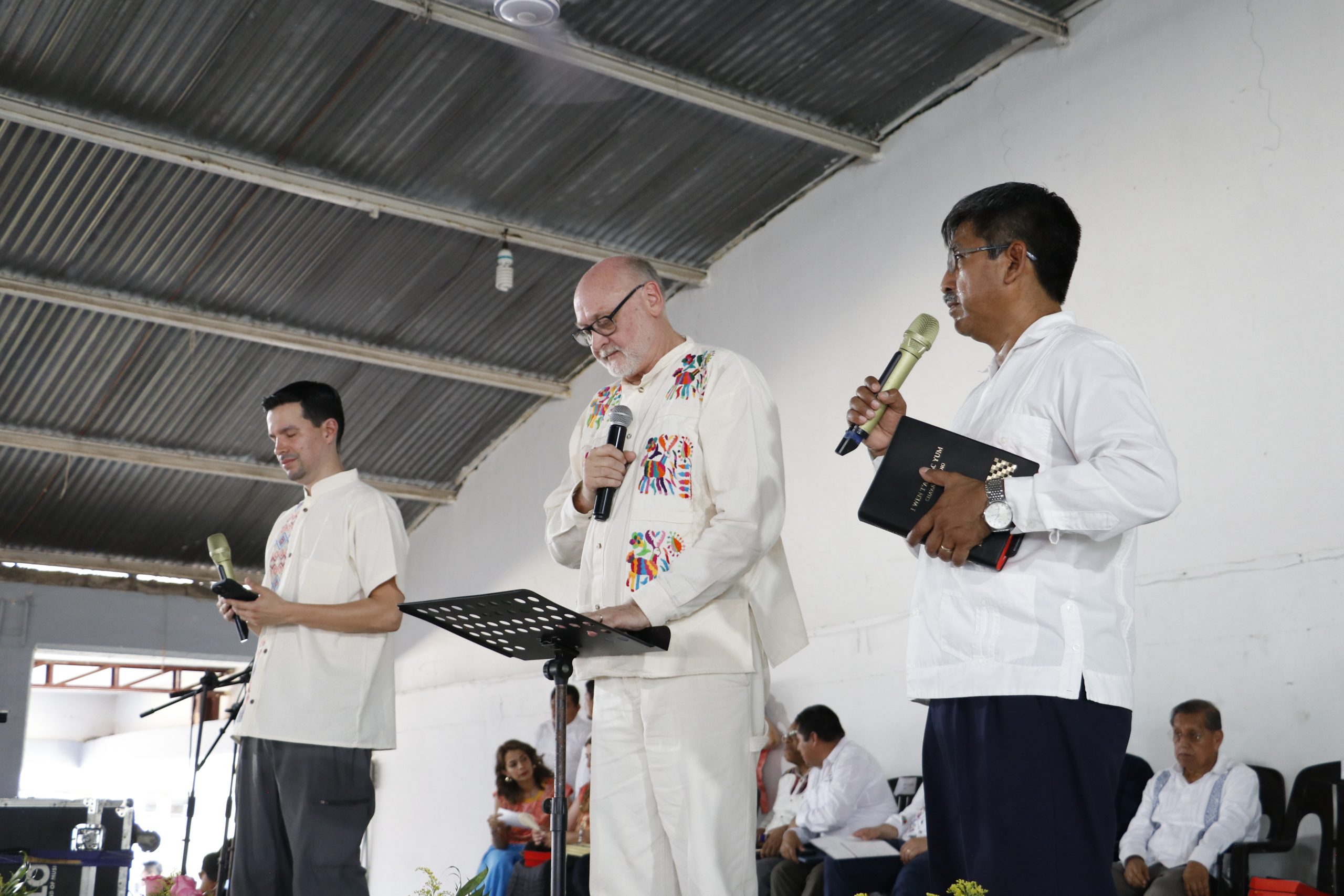 Early in the morning, the venue for the celebration was prepared to receive the over 5,000 attendees who would joyfully receive their first Study Bible in the language of their hearts. It was an event accompanied by praises, prayers, and messages from the teams involved in the translation process. The event was accompanied by Ch’ol hymns, featuring an emotional performance by a children’s choir and various congratulatory messages from distinguished visitors. Among the memorable moments, Architect Julio Splinker, BSM General Director, Rev. Dirk Gevers, UBS Secretary General, and Pastor Pablino Álvaro, President of the Ch’ol Synod of the Presbyterian Church, offered prayers in gratitude to God for the completed Ch’ol translation.